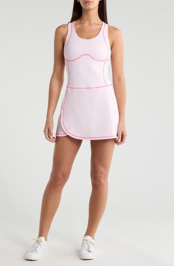 Get active in this stretchy, sporty mini made with moisture-wicking fabric for all-day play, and finished with a sleek racerback for easy movement.
