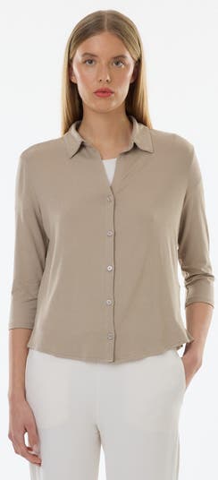 This soft touch three-quarter sleeve shirt features a luxurious semi-relaxed fit with a side slit finish. Crafted from a unique and sumptuous blend of the highest quality fibers, it is ultra-soft, colorfast, and lightweight—your perfect second-skin layer. The fabric is designed to never pill, stretch, fade, or wrinkle. Handcrafted from the finest French materials in Paris and produced exclusively in Europe.