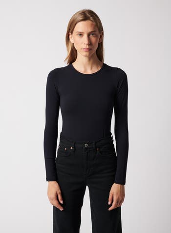 This soft touch long sleeve crewneck tee features a luxurious second-skin fit. A unique and sumptuous blend of the highest quality fibers, this tee is ultra-soft, color fast, anti-microbial, and lightweight. Your second skin and perfect layer. The fabric will never pill, stretch, fade, or wrinkle. Handcrafted from the finest French materials in Paris and produced exclusively in Europe.
