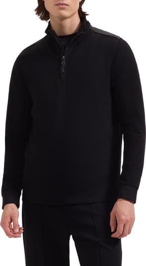 This mock-neck quarter-zip sweatshirt is cut from the label's Soft Touch performance fabric for elevated comfort. Tonal panels of contrasting fabric add a modern edge, while ribbed trim completes the look in classic style.