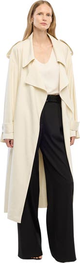 Crafted in a soft yet sturdy lyocell organic cotton blend, this medium-weight trench takes shape with flap pockets at the chest, featuring a detachable tie belt finished with pleating at the center back. The lyocell in this garment is made using wood pulp sourced from an FSC-certified supplier, focused on reducing and recovering their use of water, chemicals, and energy within the wood pulp and fiber production processes.