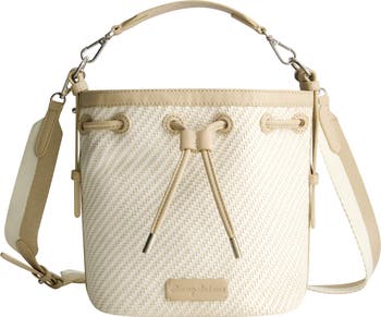 Tommy Bahama Soft Woven Drawstring Bucket Bag, Main, color, Tan/White