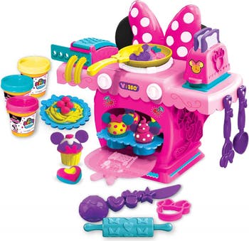- Kids will love making pretend Minnie Mouse treats with the colorful Softee Dough, rolling pin, dough cutters and other accessories