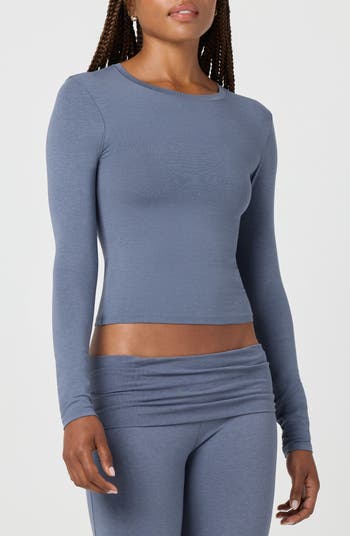 A kiss of comfortable stretch enhances the close fit of this sporty everyday top updated in a cool cropped fit.
