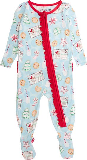 SoftSnooze Girls Holiday Ruffle One Piece Footie Pajamas