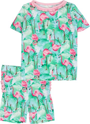 Ruffle Short Sleeve Pajama Set is the perfect addition to your little girl's bedtime wardrobe. Featuring a playful print, this set stands out with its adorable ruffle details and signature rear ruffles, adding a touch of whimsy to bedtime routines. Crafted from breathable viscose, these pajamas ensure your child stays comfortable throughout the night. The fabric's 4-way stretch provides flexibility for sleep and play, while the snug fit design keeps everything in place without restricting movement. This pajama set is gentle on sensitive skin, making it an ideal choice for children prone to irritation. Plus, the elastic waistband allows for easy dressing and undressing, enhancing convenience for both kids and parents. Soft and snuggly, this kids' sleepwear is designed for ultimate comfort. Let your girl enjoy the vibrant colors and fun design of this breathable sleepwear for kids.