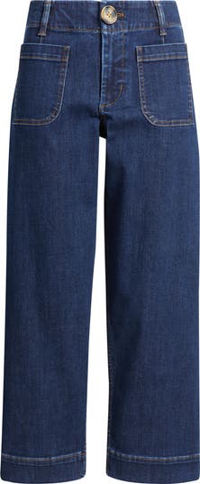 Casual yet dramatic, these vintage-inspired jeans are made of stretch-kissed denim with patch pockets and classic straight legs.