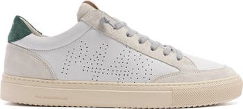 The Soho White Grey is wrapped in colorblocked leather and suede featuring a white and dark green palette. Grey cotton laces, our signature P448 rubber sole and cream tread ground the look. Swap in the extra pair of white cotton laces to keep it fresh.