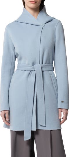 This woolly longline jacket is designed with a comfy hood and an optional tie belt.