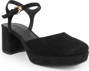A chunky platform and block heel add walkable height and a retro aesthetic to a supple suede pump secured with an adjustable buckle closure. An OrthoLite® footbed and Diamond Flex sole provide comfort, flexibility and traction.