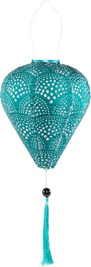 Grace your outdoor space with the exotic elegance of the Stella Tassel Lantern. Inspired by traditional lantern shapes and crafted from ultra-durable Tyvek, this solar-powered beauty combines intricate punched wave patterns with a radiant jade finish that shimmers by day and glows enchantingly by night. A delicate bead-and-tassel accent adds a touch of sophistication and movement, swaying gently in the evening breeze. Designed to help you create a truly unique space, the lantern automatically illuminates at dusk, casting intricate patterns of light and shadow across your garden, patio, or balcony. Crafted from ultra durable Tyvek material for durability and year-round outdoor use High-quality solar panel for efficient charging Bright, energy-saving LED light Rechargeable AAA battery (included) for sustainable, maintenance-free performance Durable stainless steel hardware built for outdoor use with Elegant bead and tassel detail for added charm (removable) Perfect for gardens, patios, decks, and outdoor celebrations. *11.75" Tassel accessory included