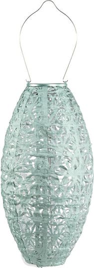Transform your evenings with the soft, enchanting glow of the Soji Stella Pod Solar Lantern. Inspired by a meadow of wildflowers in bloom, this lantern showcases an intricate floral punch pattern and a graceful, organic pod shape that brings natural elegance to any outdoor space. By day, its a sculptural accent to any garden; by night, it comes alive, casting delicate patterns of light and shadow that instantly create a warm, inviting atmosphere.\nCrafted from durable, weather-resistant DuPont Tyvek, the Stella Pod is lightweight yet tough enough to withstand the elements year-round. Its timeless design pairs beautifully with bohemian, modern, or botanical-inspired décor, making it a versatile choice for patios, balconies, pergolas, and pathways.\nThe Soji Stella Pod Solar Lantern is completely solar-powered, collecting energy from the sun during the day and automatically turning on at dusk—no cords, outlets, or maintenance required.\nEach lantern includes:\nHigh-efficiency solar panel for dependable daytime charging\nBright, energy-saving LED light that glows for hours each night\nRechargeable AAA battery (included) for eco-friendly performance\nRust-resistant stainless steel hardware for long-lasting durability\nPerfect for hanging from tree branches, accenting outdoor dining spaces, or adding atmosphere to garden landscapes, the Stella Pod Solar Lantern blends artistry with functionality.\nDimensions: 15" H x 7″ W