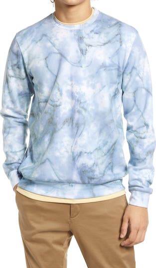 Marbled swirls splash in watery blues on a sweatshirt that's made in America with the softness of cotton and a fit that's easy to layer.