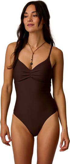 The Sol Compression One Piece channels vintage glamour with modern performance. A sweetheart neckline with delicate pleats adds shape and sophistication, while removable pads and an adjustable back tie ensure a customized, flattering fit. Crafted from recycled Lux Compression fabric that smooths and supports, Sol combines effortless style, sustainability, and quality for a timeless swim silhouette.