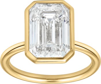 LuvMyJewelry Solaire 14K Gold Emerald Cut Lab Grown Diamond Bezel Solitaire Engagement Ring - 5 Cts, Main, color, 14K Yellow Gold