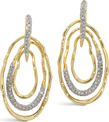 Loops of liquid metalwork plated in 14-karat gold and pavé crystals lend celestial sparkle to these mobile-inspired drop earrings.