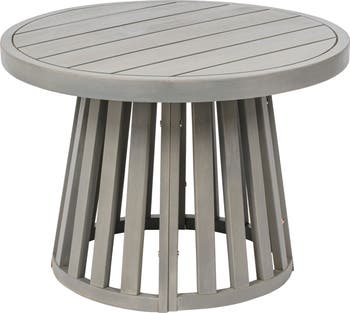 - This outdoor coffee table is defined by its round, slatted top and a striking open-slat pedestal base