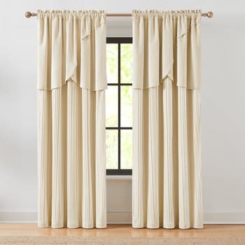 - FABRICATION: Valance: 100% cotton; panel: 100% polyester; lining: 100% polyester