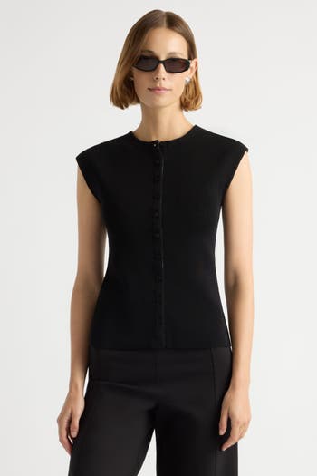 Knit in organic cotton, Solara is our take on the cozy sweater vest in an updated silhouette with a button front, cap sleeves, and a design detail at the back. We love to style with anything from slacks to an easy skirt for everyday wear.