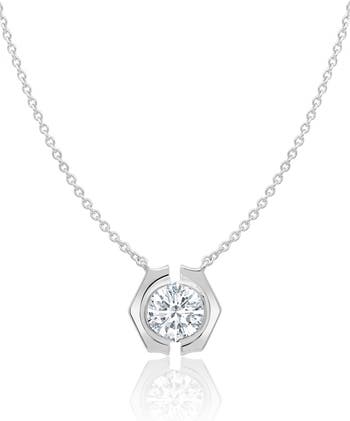 A single cubic zirconia stone centers an elegant sterling silver necklace.