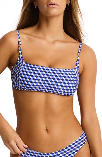 A playful print brings to mind sunbaked palazzo walls with their geometric tiles on this easy bikini top with supportive side boning and adjustable straps for a perfect fit.