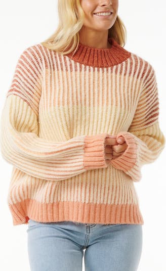 Muted hues dapple a cozy ribbed sweater knit from a wool-kissed blend in a relaxed silhouette.