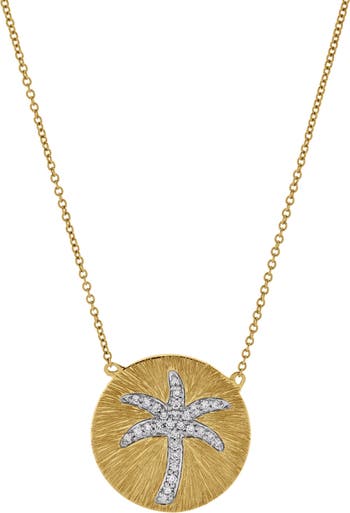 Soleil Palm Diamond Studded Round Disc Pendant Necklace in 14K Gold