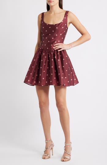 Be sweetly spotted in a darling party dress fixed with a flouncy skirt and perfected with a pair of pockets.