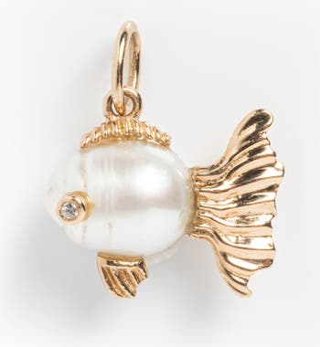 Whether you're embracing your spiritual side or just want something pretty, this golden fish charm featuring a baroque pearl will make an impactful addition to your favorite chain. Baroque pearls are believed to offer properties of emotional balance, calmness and inner peace by soothing negative emotions and promoting inner serenity, making this statement charm a meaningful gift for yourself or a loved one.