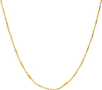 The Adina Eden Solid Bar X Ball Chain Necklace is a distinctive and stylish accessory, crafted from brass and plated in luxurious 14K gold for a refined finish. With a delicate 1.5mm thickness, this necklace features an alternating bar and ball design that creates a unique and eye-catching texture. Available in 14", 16", and 18" lengths, it offers versatile styling possibilities—perfect for layering or wearing solo as a subtle statement piece. Finished with a secure lobster lock clasp, this necklace brings a modern edge to any jewelry collection.