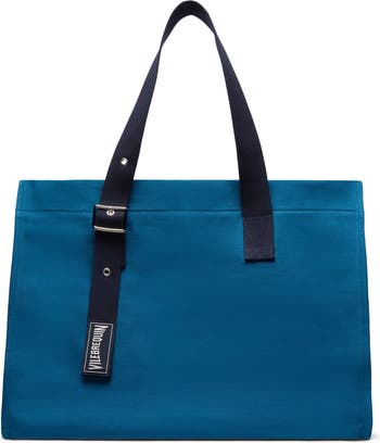 Combine style and practicality with the Bagsu unisex adults' beach bag|Folding into itself, this cotton canvas tote bag goes everywhere with you and holds all your essentials once unfolded|It has adjustable handles through eyelets at the top, with a buckle and Vilebrequin rubber logo.