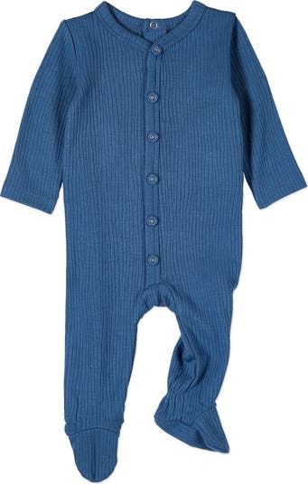 Seeking the perfect everyday sleepwear for your precious little lovebug? This cute rib-knit footie has it all buttoned down. The luxe fabric blend combines cotton and rayon for soft, breathable comfort. Convenient back snaps allow effortless on-and-off. Finishing touch? Decorative dyed-to-match buttons..