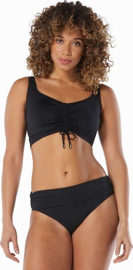 Elevate your swim style in Coco Reef's Elevate Bra Sized Shirred Underwire Bikini Top in solid colors that pop. This bikini top features a shirred front, removable soft cups, underwire, silver trim details and adjustable drawstring front straps.