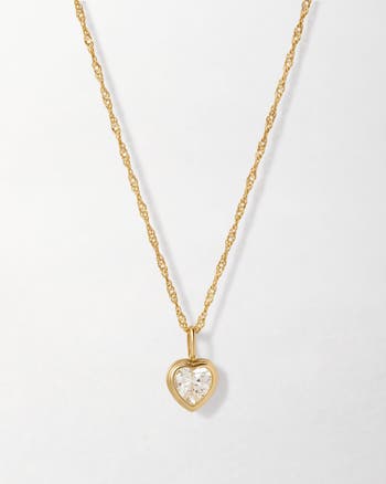 Solid Gold Heart White Sapphire Necklace