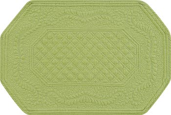 Bring a timeless touch of style and function to your dining table with this set of 6 solid green octagonal placemats. Designed with a vintage-inspired silhouette, each placemat measures 13" x 19" and is crafted from 100% cotton, ensuring both durability and comfort. The deep green hue provides year-round appeal, effortlessly complementing dishware and seasonal décor, whether you are setting the table for a festive Christmas gathering, a cheerful spring brunch, or casual weeknight meals. Their versatile shape adds dimension to your tabletop, creating a refined presentation that elevates everyday dining as well as special occasions. Machine-washable for easy care, these placemats hold their color and structure, even with frequent use. Functional yet decorative, they protect your table from scratches, spills, and heat while providing a stylish backdrop for meals. A thoughtful gift for hosts, families, or anyone who enjoys entertaining, this set brings both charm and practicality to the kitchen or dining room.