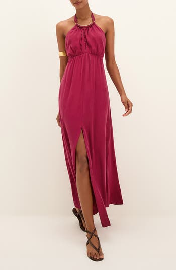Polished bit hardware shines along the neckline of a cover-up maxi dress that has you looking chic from beach walks to sunset cocktail hour.