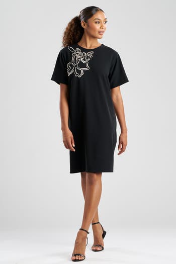 The short sleeve knit crepe shift dress combines modern simplicity with refined detail. Crafted from soft, structured crepe and finished with delicate embellishment, it’s an effortless expression of understated elegance.