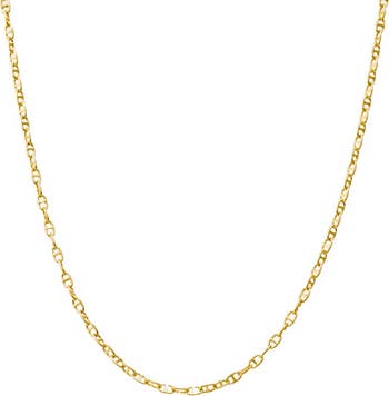 kThe Adina Eden Solid Mariner Chain Necklace is a bold and sophisticated accessory, crafted from durable brass and beautifully plated in 14K gold for a rich, lasting finish. This 2mm thick mariner chain is designed with interlocking oval links, offering a distinctive, timeless look that's perfect for adding a touch of elegance to any outfit. Available in 14", 16", and 18" lengths, it provides versatile styling options, whether worn alone or layered. Finished with a secure lobster lock clasp, this necklace is a perfect blend of style and durability, making it a standout piece in any jewelry collection.