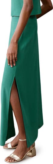 Fluid fabric and side slits will have you feeling extra fancy in this lengthy maxi skirt done a vivid hue.