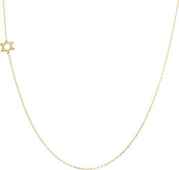Celebrate elegance and meaning with the Solid Sideways Star of David Necklace. Crafted in 14K gold, this necklace features a sideways Star of David pendant, which measures 7 MM and offers a contemporary twist on a classic symbol. The chain, adjustable with a 2" extender, ensures a customized fit, making this piece both versatile and stylish. Ideal for adding a touch of personal significance to your everyday look.