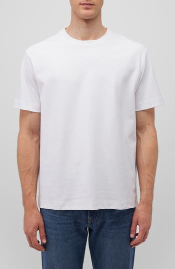 A versatile essential of any wardrobe, this stretch-enhanced cotton T-shirt features solid coloring that pairs with practically everything whether you're going elevated or casual. It works best with softer fabrics and makes a great base layer when the weather cools.