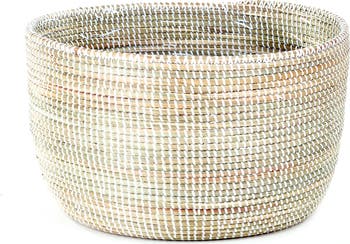 This beautifully handcrafted storage piece with a crisp white finish brings clean, effortless style to any room. Woven by skilled Wolof women artisans in rural Senegal using traditional coiling techniques, this basket combines natural cattail stalks with salvaged plastic strips for strength and durability, yet remains lightweight and easy to handle. Each piece reflects its artisan’s individual touch, so slight variations in shape and texture make every basket uniquely charming and brimming with handcrafted character. Perfect for organizing knitting supplies, yarn, craft tools, or small household items, this versatile basket also adds stylish storage to living rooms, home offices, or playrooms. Its open, easy-access design makes it simple to reach for essentials while keeping spaces neat and tidy, and the clean white hue complements a range of decorating styles from modern minimalist to cozy cottage. Whether used for practical organization or as a decorative accent, this artisan-made basket brings both everyday utility and meaningful cultural craftsmanship into the home