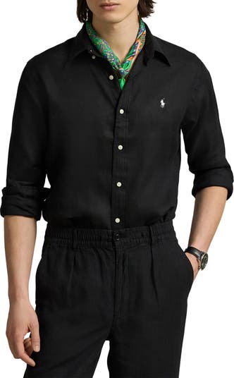 Lightweight, perfectly rumpled linen makes a warm-weather staple of a shirt that's styled with a classic button-down collar and designed to look smart whether you wear it tucked or untucked.
