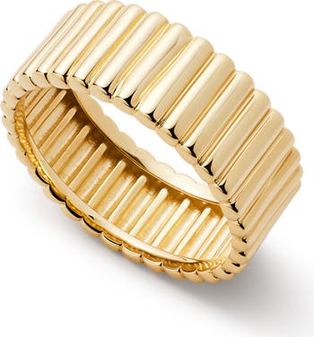 Stackable and statement-making, this solid yellow gold ring is the textured touch you’ve been searching for. Crafted in recycled solid gold, this ring features a wide band with a unique textured finish. Stack this piece with our Slim Nova Ring to create a truly head-turning look.