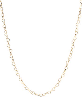 This solid yellow gold necklace is the perfect combination of femme and fun. Designed for everyday wear, this necklace crafted in recycled solid gold features heart-shaped links in a waterproof and tarnish-free design. This one-of-a-kind necklace is bold enough on its own but we’d recommend pairing it with our Gold Mini Diamond Studs for a sparkly finishing touch.