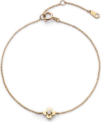 Put the perfect finishing touch on your wrist stack with this solid yellow gold bracelet. Crafted with recycled solid gold, this bracelet features a simple chain and a decorative flower with a lab-grown emerald in the center. Wear this bracelet on its own for a more minimal look or with our Gold Mini Box Chain for an elevated stack. Waterproof & tarnishproof.