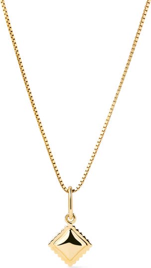 Not just any solid yellow gold charm necklace, this set is designed to make a statement in any stack. Crafted in recycled solid gold, this necklace set features a sleek box chain with a playful ravioli charm. Style this set with our Gold Huggie Hoops for a simple yet fun look. The Ravioli Charm Necklace includes two pieces: Gold Chain - Gold Mini Box Chain & Solid Yellow Gold - Mini Ravioli Charm.
