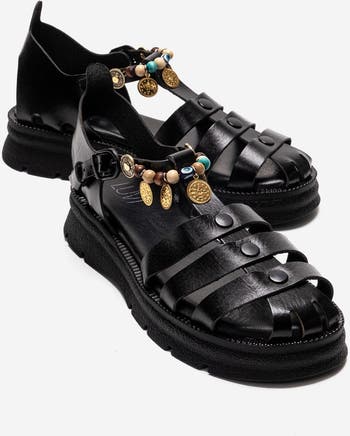 A boho-luxe beaded sandal that combines natural leather texture with statement charm and a supportive closed back