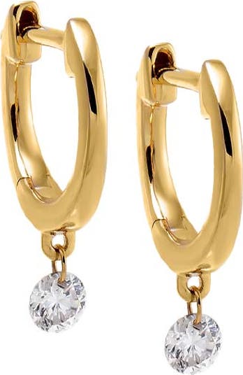 Solitaire Floating Diamond Solid Huggie Earring 14K