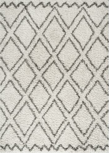 Inspired by vintage Beni Ourain rugs, our soft and fluffy shag yarns make it easy to go barefoot. Our classic Moroccan pattern has deep gray diamond trellis on a field of ivory. Anchor your Bohemian space; add softness to a bedroom, living room, or cozy reading nook; this fluffy shag rug has timeless style.